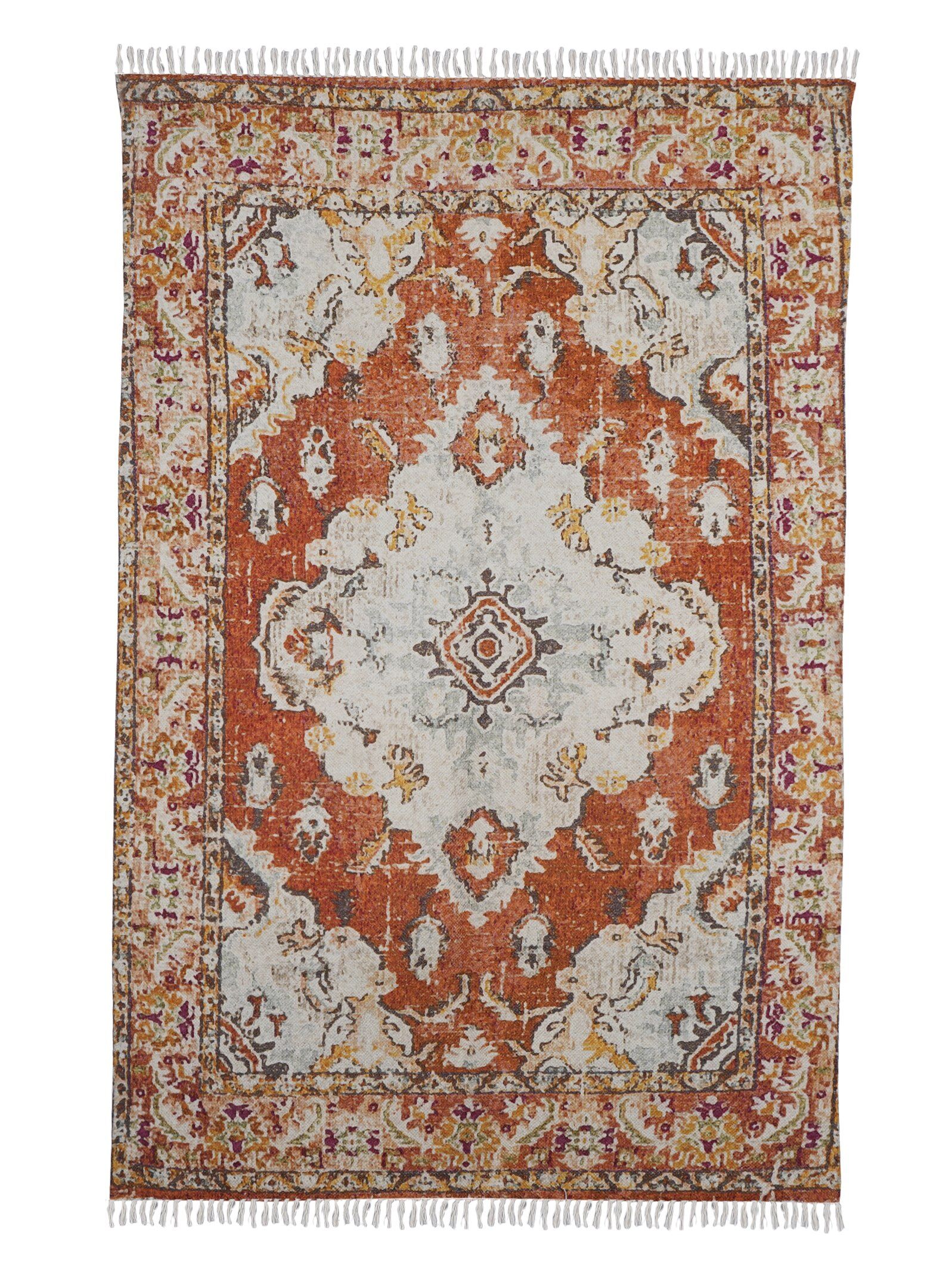 Add this beautiful traditional Adana Printed Rug to any room in the home. Hand-finished with 100% cotton, this textured woven rug is versatile for bringing a variety of decor together.