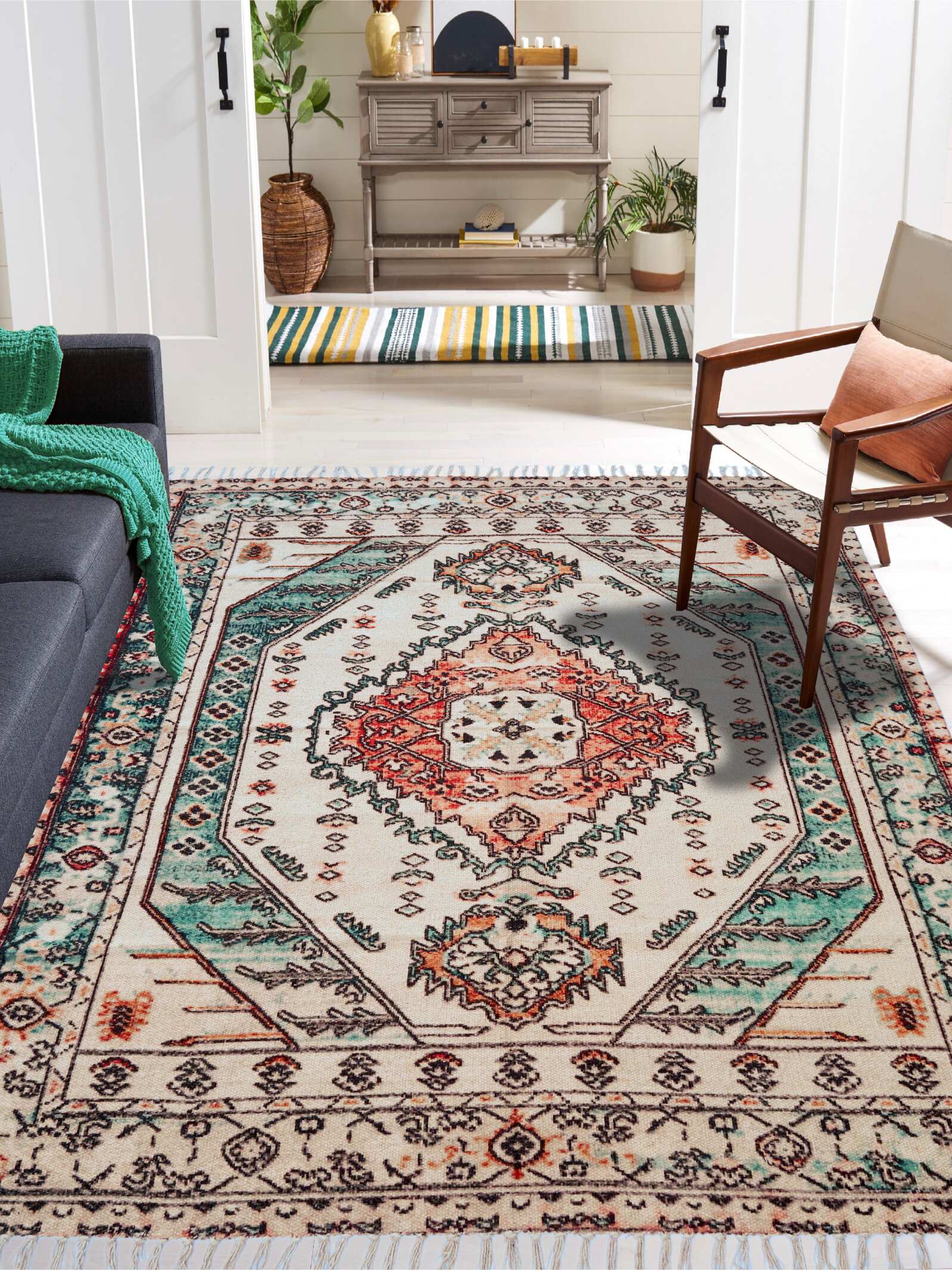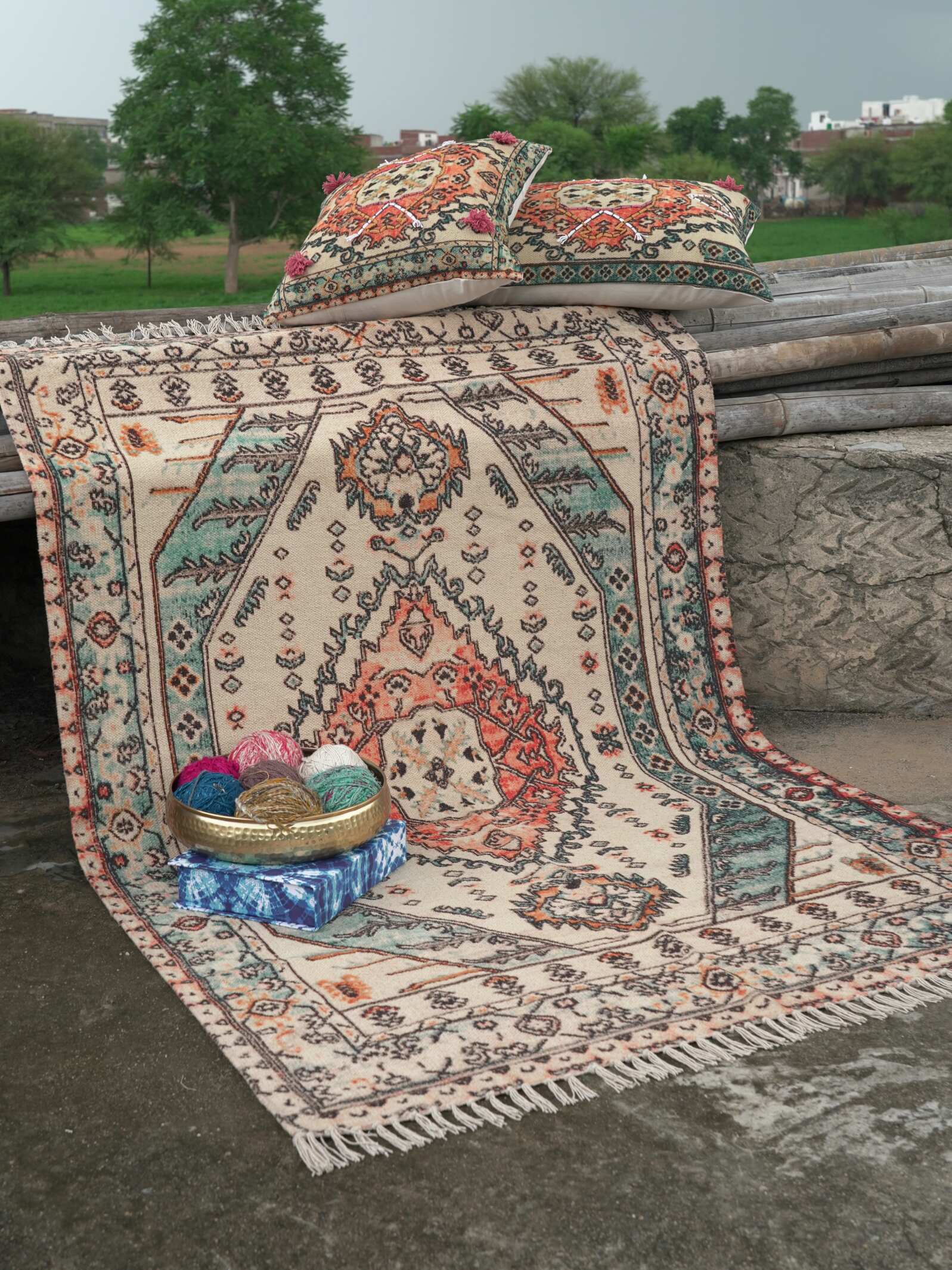 The ideal method to add some colour, warmth, and fun to any home is with our Izi Printed Rug. So Shop our handmade rug for your home and amp up your decor. Discover the epitome of luxury and style with our handloom cotton printed rug, made from the finest quality cotton fibres, this rug exudes elegance.