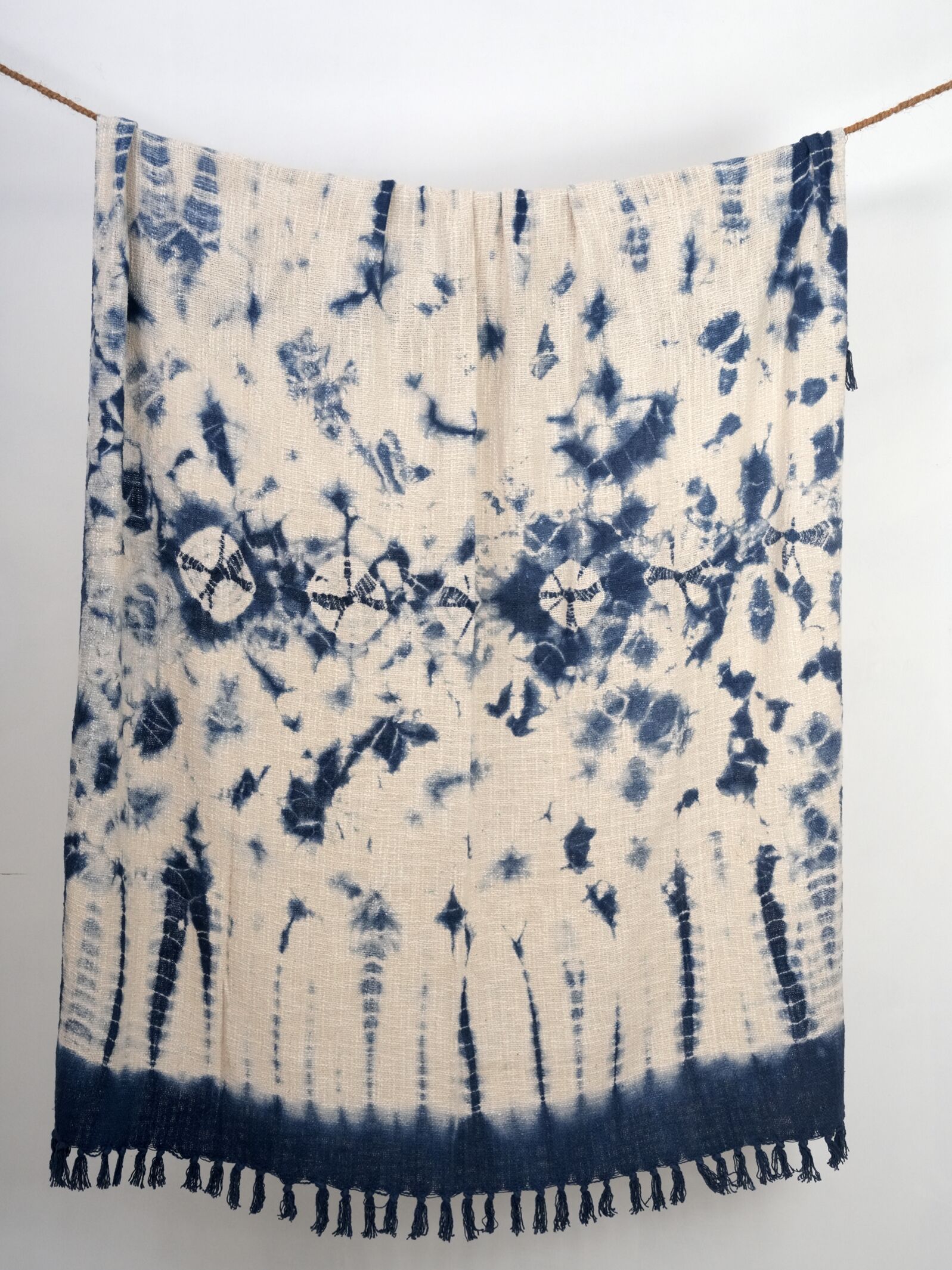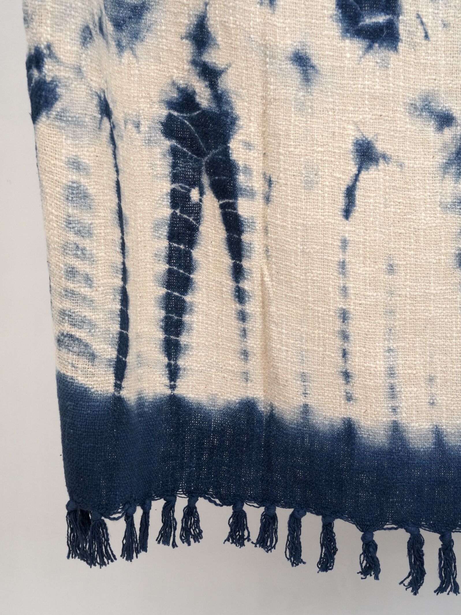 Introducing an artful, contemporary vibe to your space with our Abstract Tie-Dye Throw. Featuring a unique blend of off-white and blue shades in an abstract tie-dye pattern, each throw is individually hand-dyed, making every piece distinct. The soft cotton fabric adds warmth and comfort, whether draped over your favorite chair, layered on the bed, or wrapped around you on chilly nights.